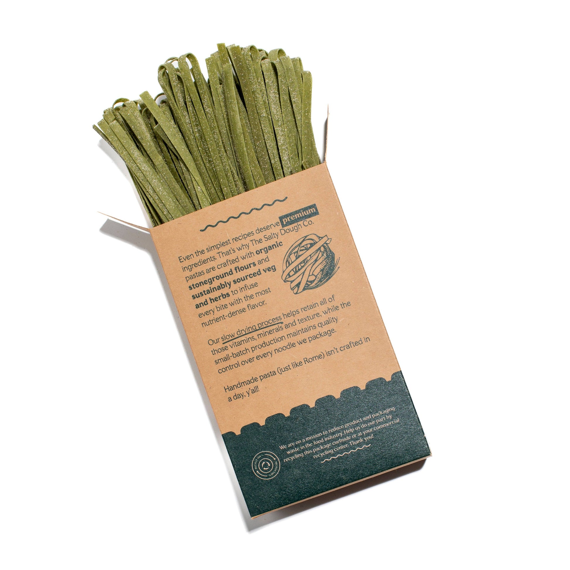 Our Spinach Fettuccine would be pair nicely with a cream-based sauce, emulsified butter, or our personal favorite - anchovy & breadcrumbs!