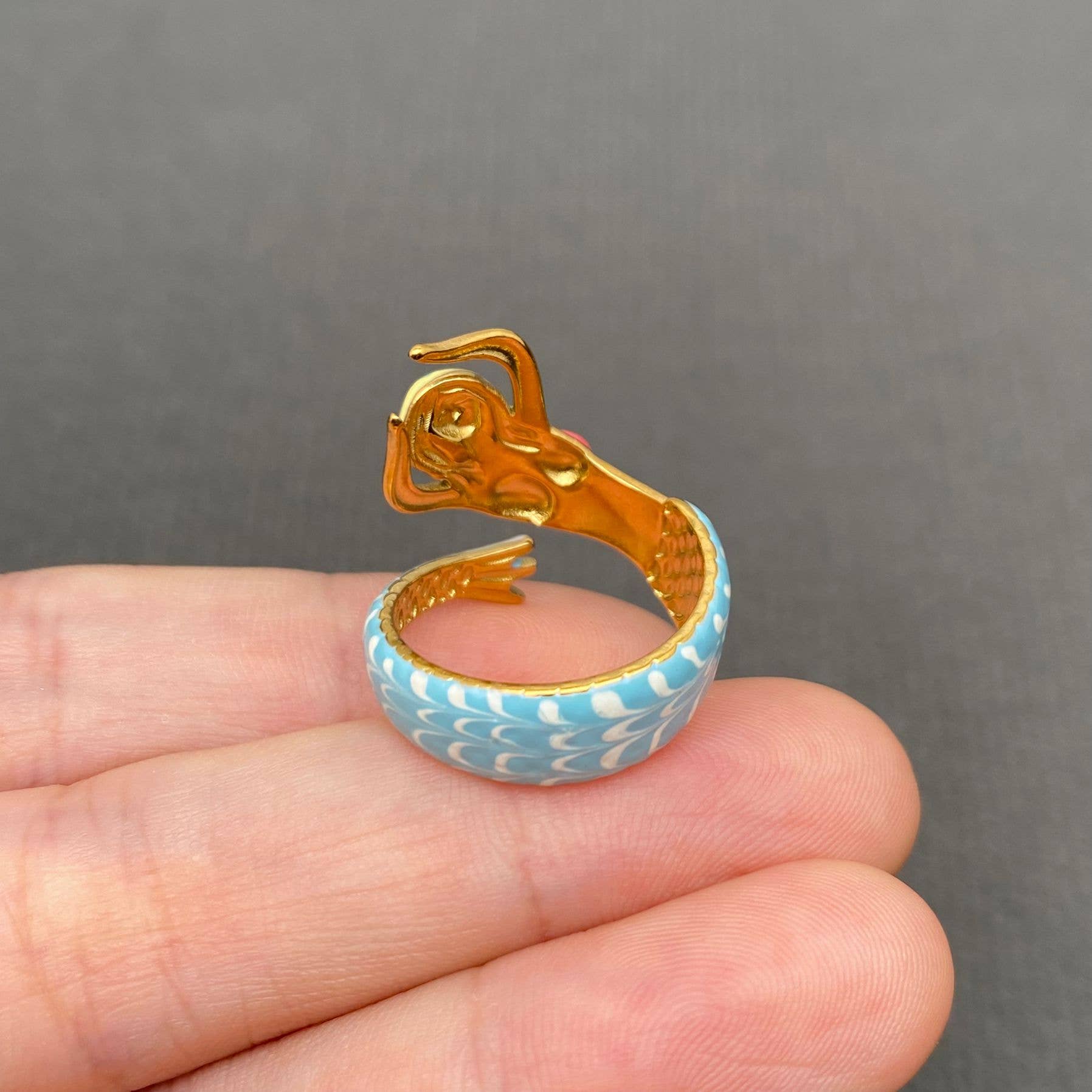 Enamel Mermaid 18K Gold Plated S.Steel Adjustable Ring - FGS