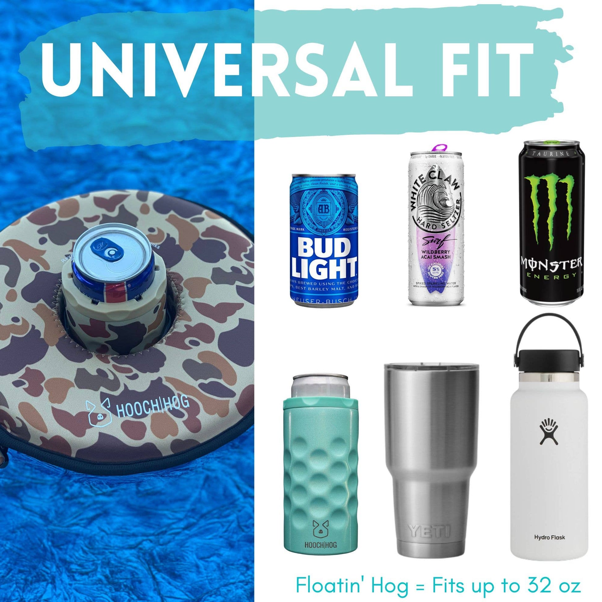 Flip It And Reverse It...[To Fit All Your Drinks]: This pool drink holder is made with our One Size Fits Most System and will hold cans, cans + stainless steel can holders (to keep your drinks cold while in the water), Yeti 32 oz. tumblers and lots more.