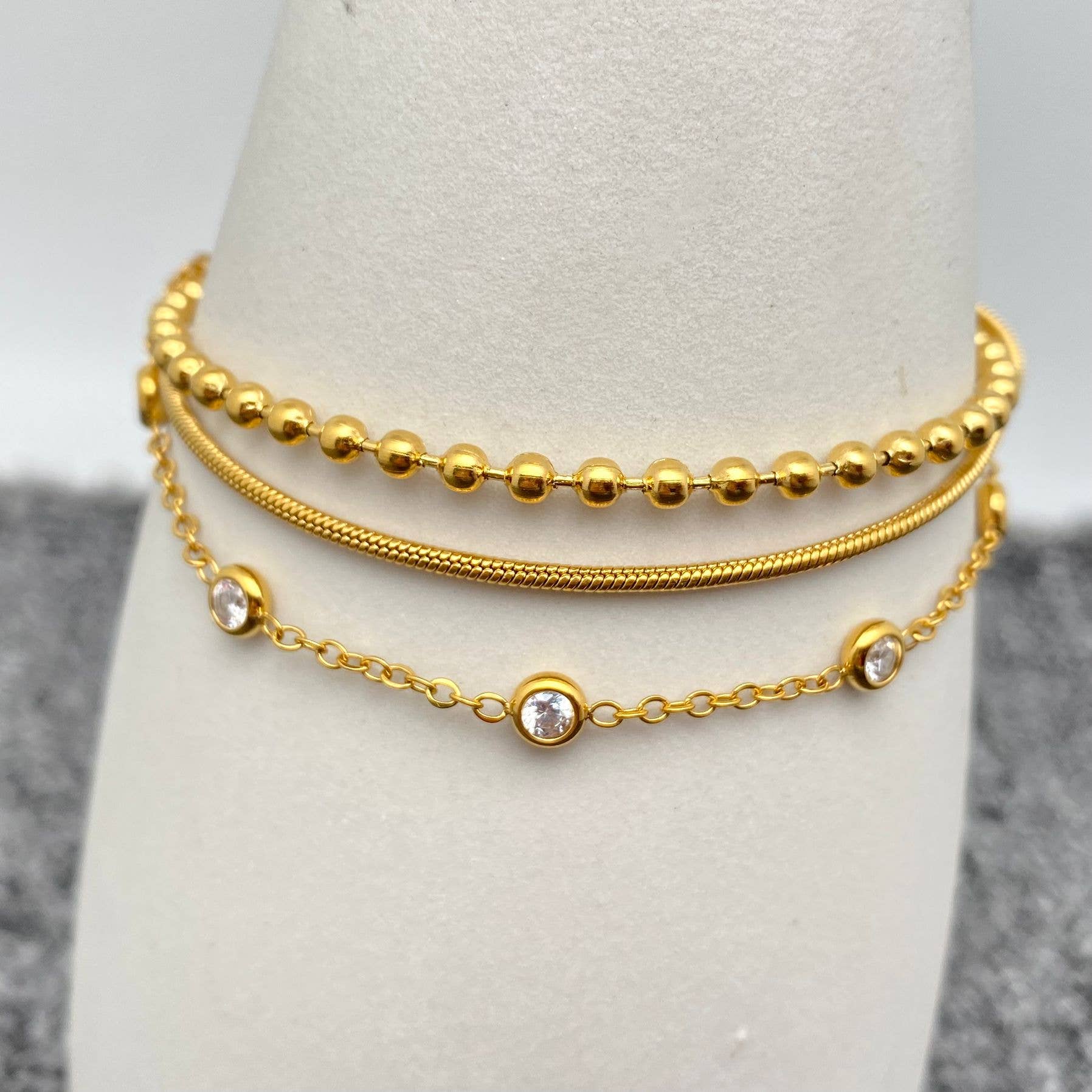 Inlaid CZ 3-layer 18K Gold-plated Steel Chain Bracelet