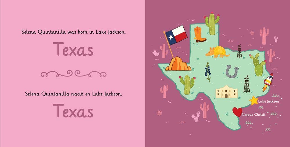 This special edition of The Life of / La vida de Selena celebrates the life of the “Queen of Tejano Music”, Selena Quintanilla. Introduce your little ones to the most recognizable Latina music artist of our time. Born on April 16, 1971 in Lake Jackson, Texas, Selena Quintanilla was destined to be a star. Her career started at a young age when she became the lead singer in her family’s band, Selena Y Los Dinos. As her popularity soared, so did her gift for fashion, and she soon began to design and manufacture her own line of clothing. To this day, her music and fashion continue to bloom in our hearts.