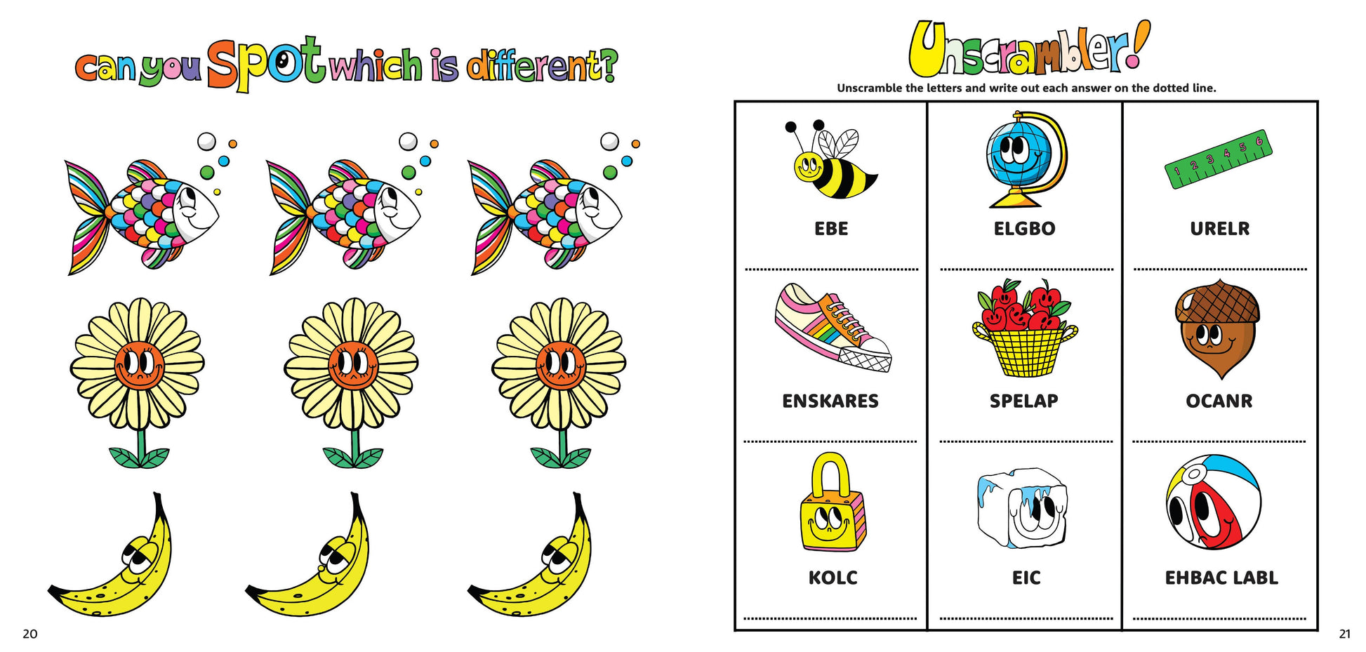 The bright pop art of Chris Uphues and his studio Beautiful Days is on full display in this colorful activity book, perfect for adventurous and creative minds age 8 and up. The art of gift studio Beautiful Days, the husband-and-wife team of Chris Uphues and Jen Koehl, is as vibrant and inviting as a warm summer day—and as silly as your imagination can handle. This activity book features 128 full-color pages of puzzles, doodle challenges, word searches, and fun fill-in content. Trade Paperback Book; 9.75 x 9.25 inches; 136 pages.