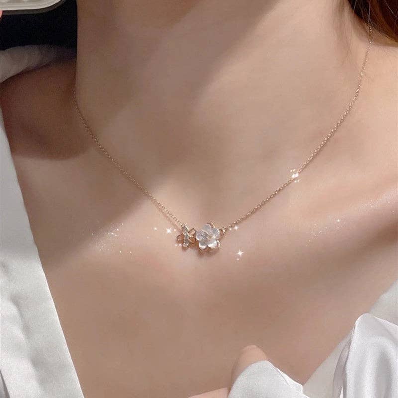 Pink Cherry Blossom Pendant Necklace in Solid Copper