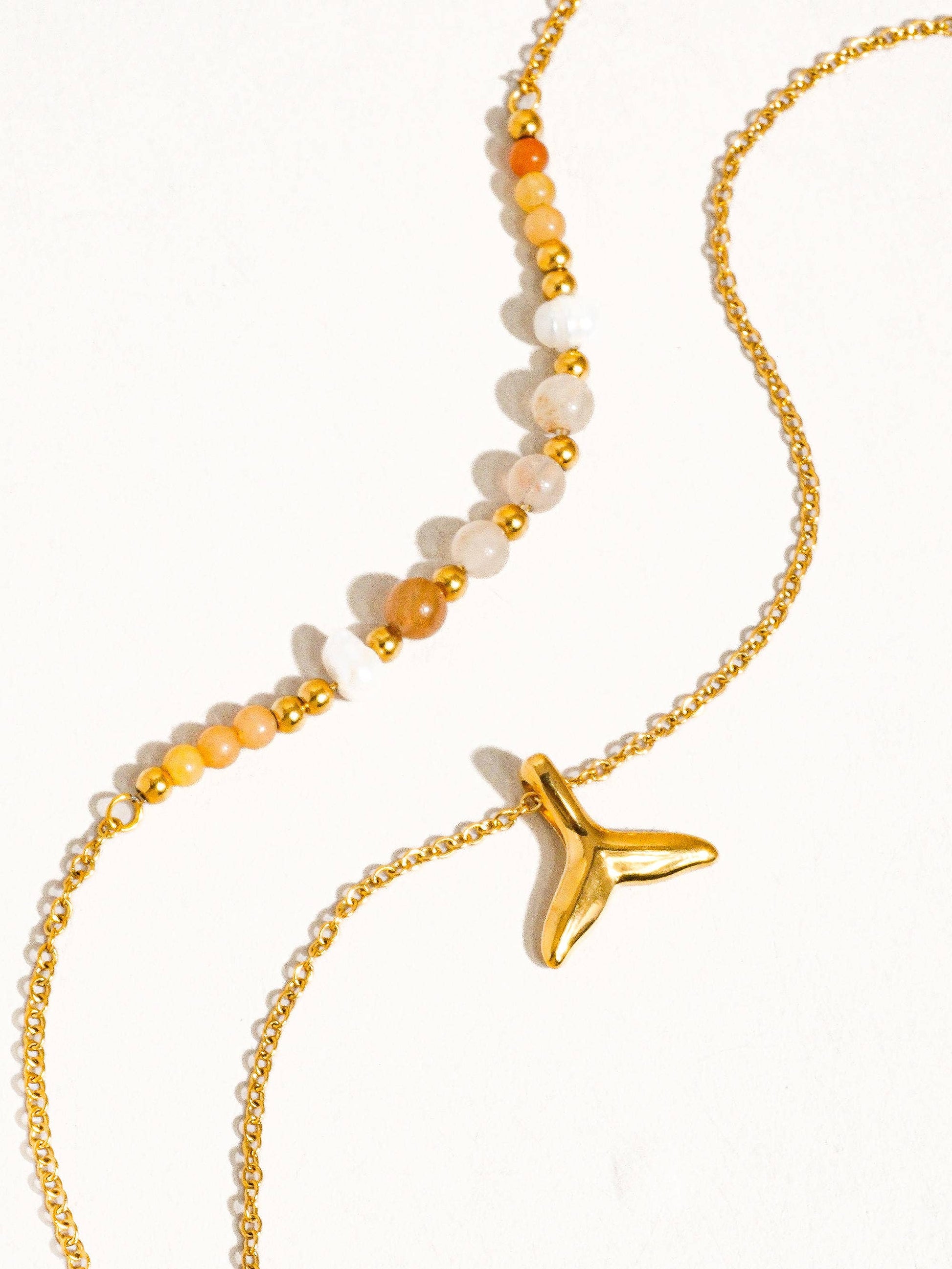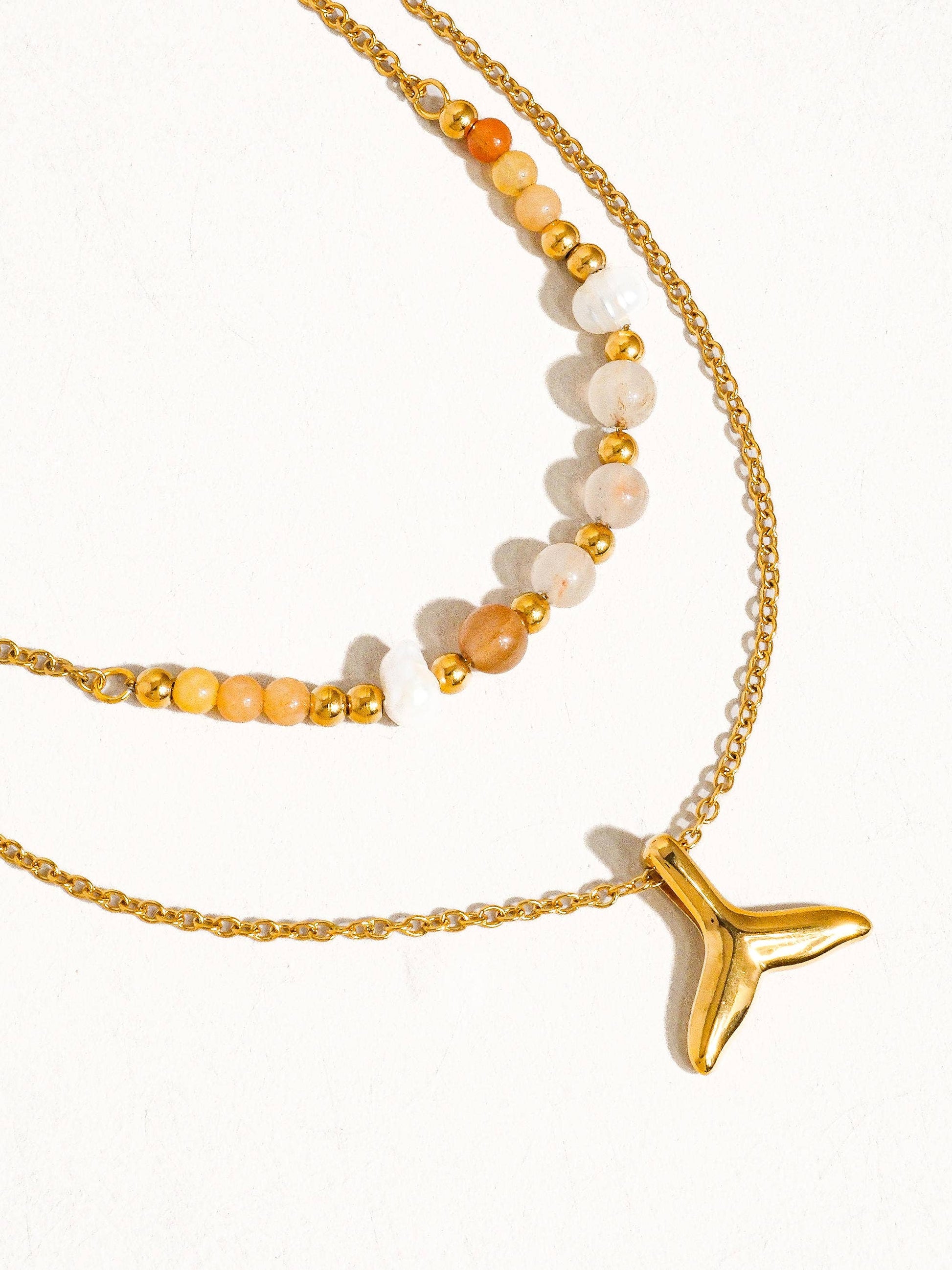 18K Gold Non-Tarnish Mermaid Layered Beaded Necklace