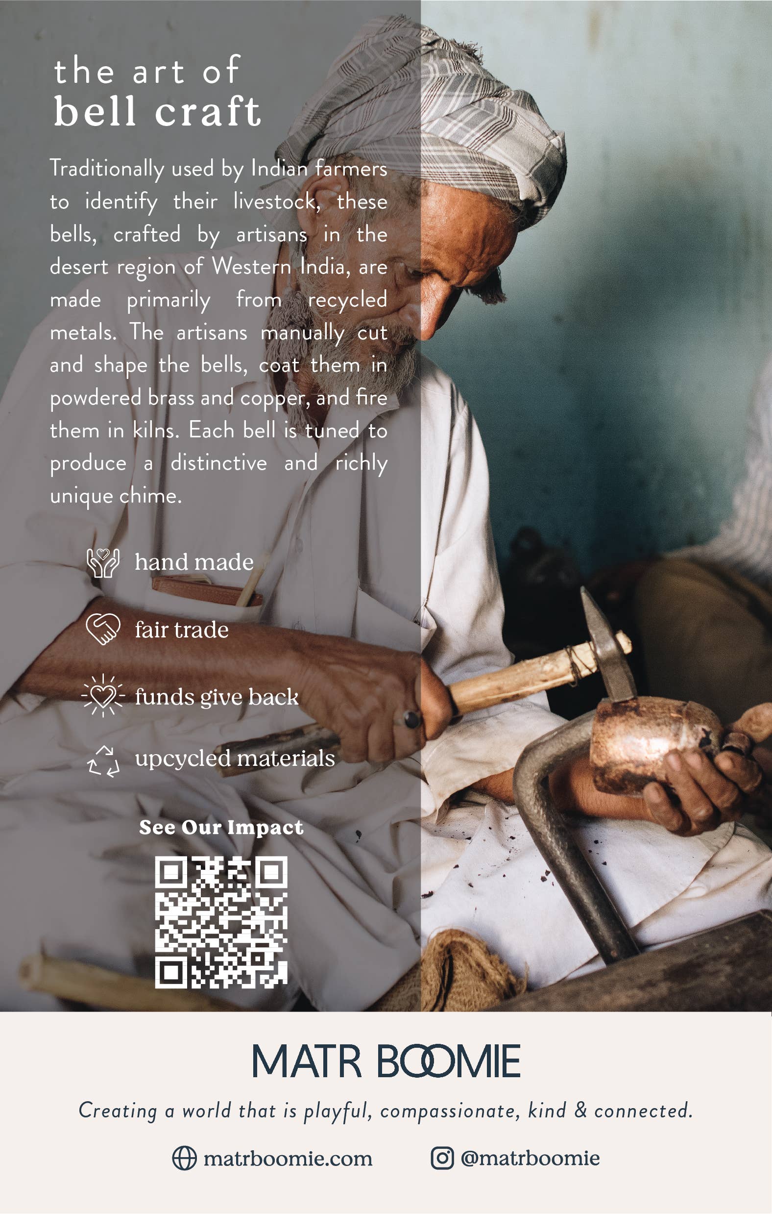 The Texas State Flower Bluebonnet Wind Chime features a handcrafted shape of Texas state metal ornament with a small dangling metal bell. This indoor outdoor wind chime, hanging art is hand painted in light blue with an intricate bluebonnet design and has a jute hanger. Hang indoors or on an outdoor patio for patriotic flair and a soothing sound. Bundle with other Texas items from our State Collection. All of Matr Boomie's collections are artisan made, fair trade, and sustainable.