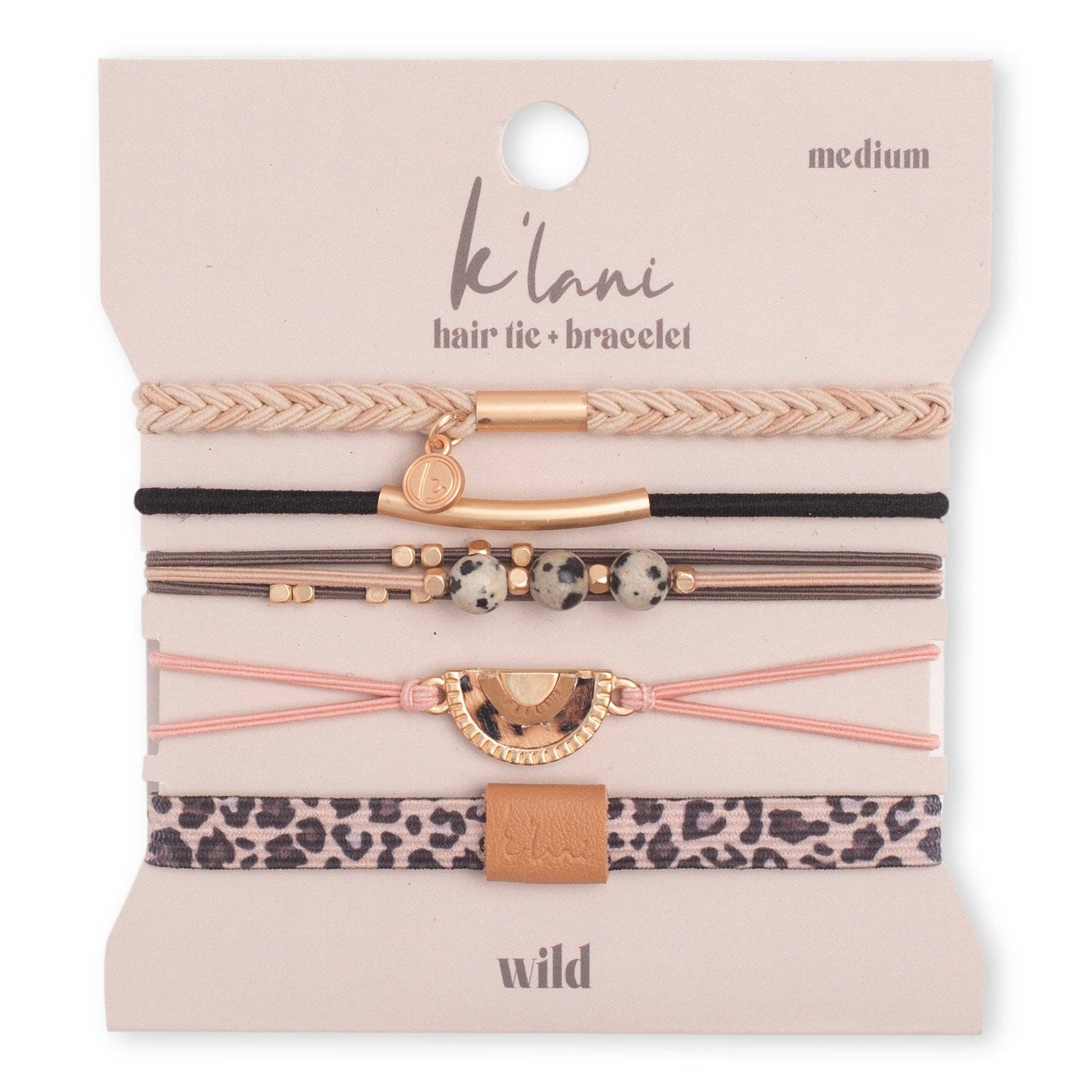 Our Wild set features animal prints and neutral colors that add a touch of untamed elegance to your look. This versatile accessory is perfect for keeping your hair in check while making a bold style statement on your wrist.